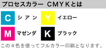 フルカラー印刷とは4c(4色)の掛け合わせで濃淡や比率の組み合わせにより階調表現された印刷物をさします。 4cとは左記のCMYKのことで、 0cとは印刷しないという意味です。 |